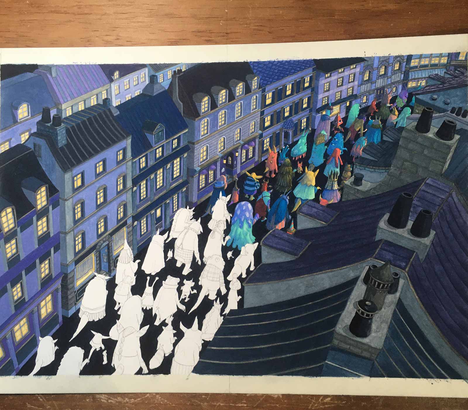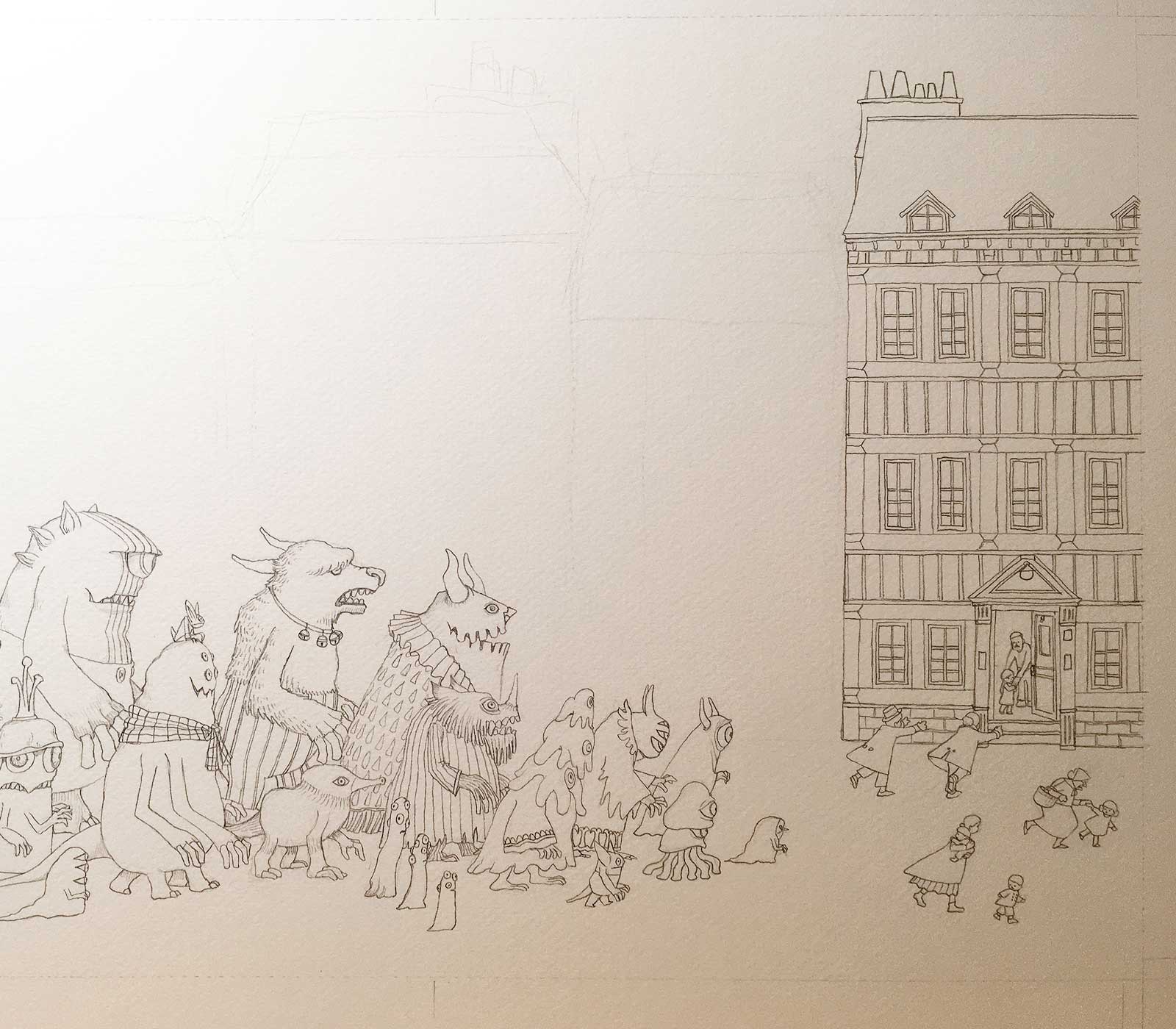 そして怪物たちは、みんなの住む街までやって来ると、通りを行進しはじめました。そのとき、家の中で子どもたちは...